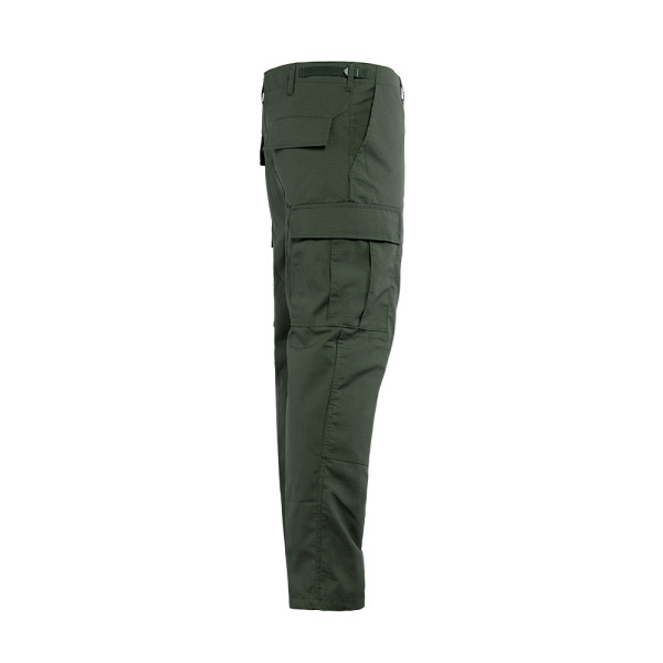Kalhoty podle střihu BDU (battle dress uniform) v army zelné barvě. Materiál 35 % bavlna, 65 % polyester, 210-220 g/m². Více informací