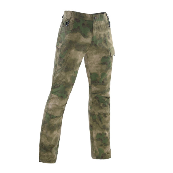 Taktické kalhoty v military stylu v kamufláži a-tacs fg. Kalhoty jsou lehké, pohodlné a přesto velice odolné - vyrobeno z tkaniny rip-stop. Velké množství kapes a elastický pas. Posílená kolena. Pásek není součástí. Materiál 35 % bavlna, 65 % polyester, 210-220 g/m². Více informací