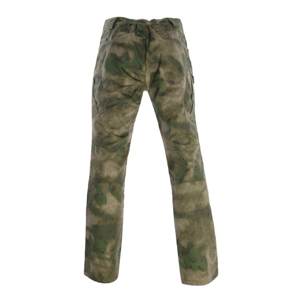 Taktické kalhoty v military stylu v kamufláži a-tacs. Kalhoty jsou lehké, pohodlné a přesto velice odolné - vyrobeno z tkaniny rip-stop. Velké množství kapes a elastický pas. Posílená kolena. Materiál 35 % bavlna, 65 % polyester, 210-220 g/m².