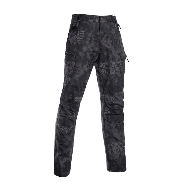 Taktické kalhoty v military stylu v kamufláži python. Kalhoty jsou lehké, pohodlné a přesto velice odolné - vyrobeno z tkaniny rip-stop. Velké množství kapes a elastický pas. Posílená kolena. Pásek není součástí. Materiál 35 % bavlna, 65 % polyester, 210-220 g/m². Více informací