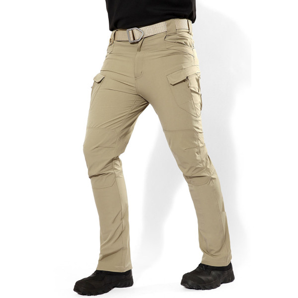 Rychleschnoucí taktické kalhoty s voděodolnou úpravou. V khaki barvě. Kalhoty jsou velmi lehké a z příjemného materiálu. Složení 90% nylon + 10 % spandex. Pásek není součástí kalhot. Více informací