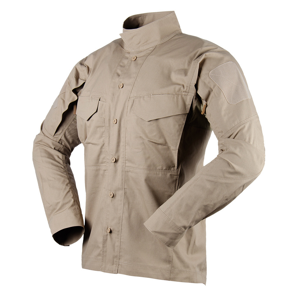 Taktická košile v military stylu v khaki/pískové barvě. Košile je z přijemných materiálů a je dokonale prodyšná (také díky odvětrání v podpaží). Límec má praktický magnet pro rychlé uchycení.