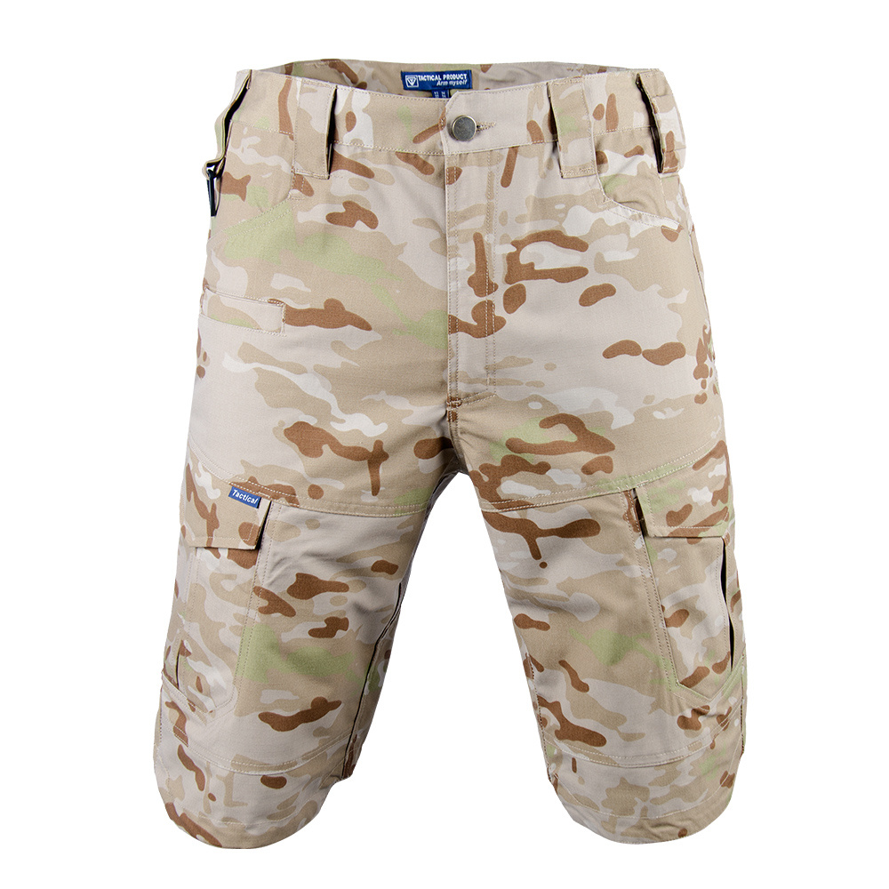 Taktické maskáčové kraťasy v military stylu v pouštní kamufláži. Díky tkanině s teflonovou vrstvou disponují větší odolnosti vůči promoknutí a znečištění. Kraťasy jsou rychleschnoucí a prodyšné. Pro každodenní nošení. Materiál 65% polyester a 35 % bavlna. Více informací