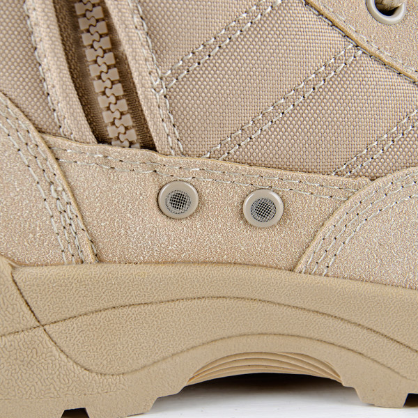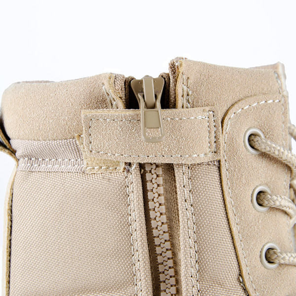 Taktické boty z naší military edice Smilodon v khaki/pískové barvě. Vyrobeny jsou z pravé hovězí kůže a nylonu, podrážka je ze syntetické gumy. Vybaveny jsou praktickým zipem, který usnadní obouvání.