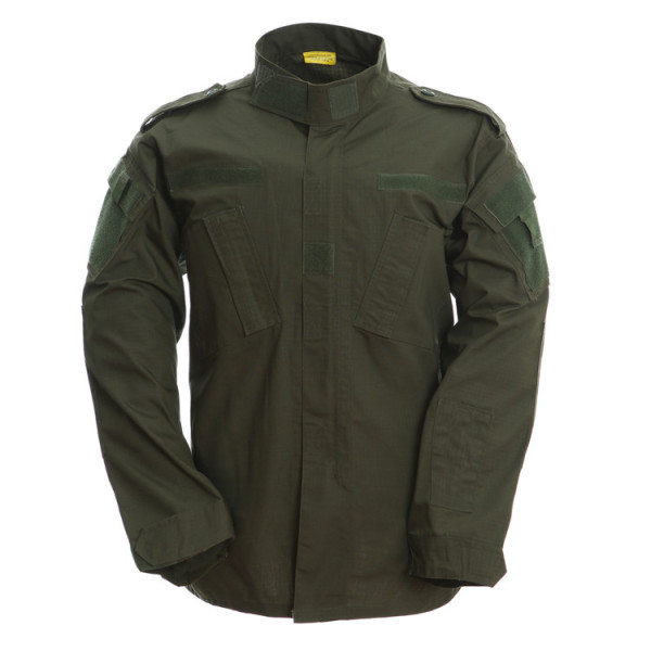Taktická maskáčová souprava (kalhoty a blůza) ve stylu ACU (army combat uniform). V zelené military barvě. Vyrobeno z pevné tkaniny ripstop. Materiál 65% polyester 35% bavlna.