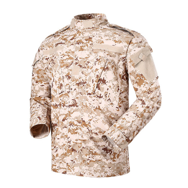 Taktická maskáčová souprava (kalhoty a blůza) ve stylu ACU (army combat uniform). Pouštní kamufláž desert digital. Materiál 65% polyester 35% bavlna.