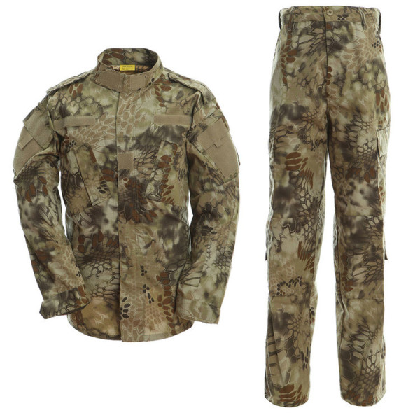 Taktická maskáčová souprava (kalhoty a blůza) ve stylu ACU (army combat uniform). V kamufláži highlander. Vyrobeno z pevné tkaniny ripstop. Materiál 65% polyester 35% bavlna.