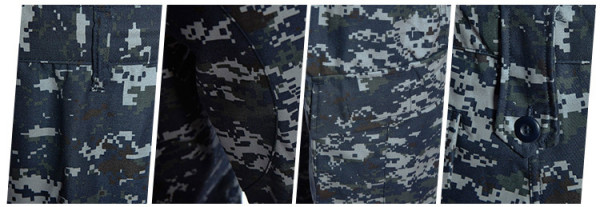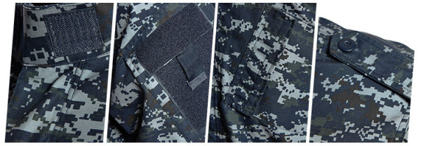 Taktická maskáčová souprava (kalhoty a blůza) ve stylu ACU (army combat uniform). Kamufláž ocean digital - varianta pro námořnictvo (modrý nádech). Vyrobeno z pevné tkaniny ripstop. Materiál 65% polyester 35% bavlna.
