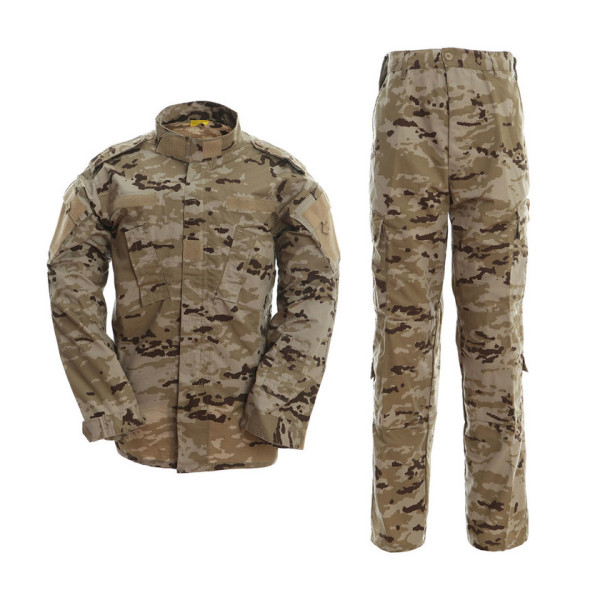 Taktická maskáčová souprava (kalhoty a blůza) ve stylu ACU (army combat uniform). Ve španělské pouštní kamufláži. Vyrobeno z pevné tkaniny ripstop. Materiál 65% polyester 35% bavlna.