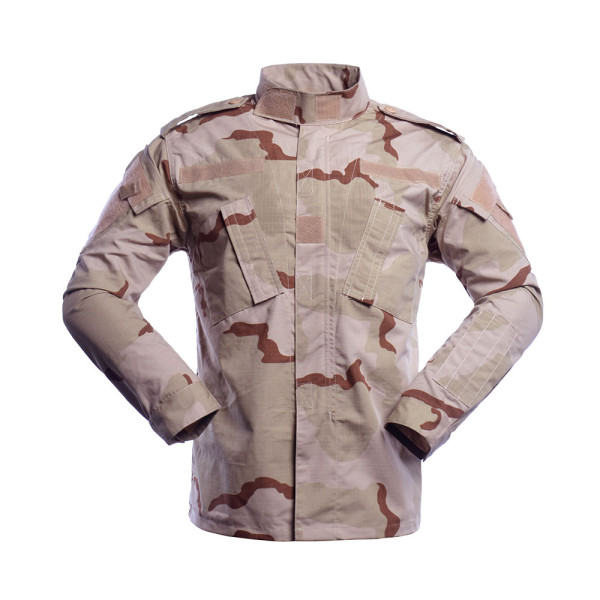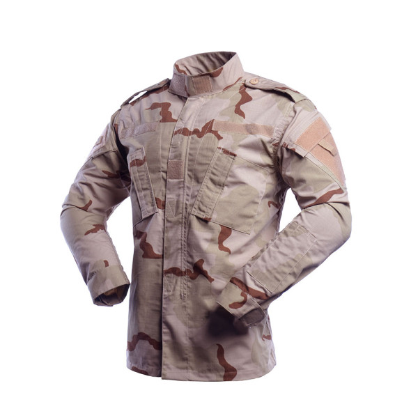 Taktická maskáčová souprava (kalhoty a blůza) ve stylu ACU (army combat uniform). Pouštní kamufláž tri-desert. Vyrobeno z pevné tkaniny ripstop. Materiál 65% polyester 35% bavlna.