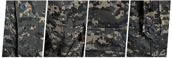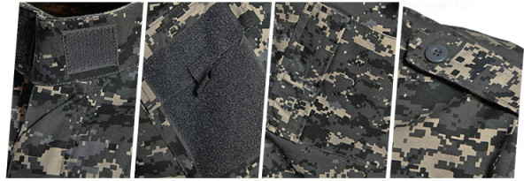 Taktická maskáčová souprava (kalhoty a blůza) ve stylu ACU (army combat uniform). Kamufláž urban digital - varianta do města. Vyrobeno z pevné tkaniny ripstop. Materiál 65% polyester 35% bavlna.
