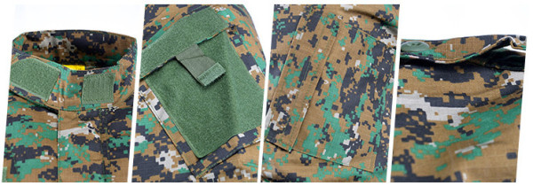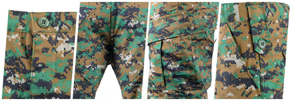 Taktická maskáčová souprava (kalhoty a blůza) ve stylu ACU (army combat uniform). Kamufláž digital woodland - tropická varianta do džungle. Vyrobeno z pevné tkaniny ripstop. Materiál 65% polyester 35% bavlna.
